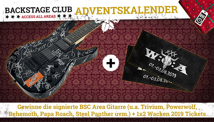 Gewinne die signierte BSC Area Gitarre (u.a. Trivium, Powerwolf, Behemoth, Papa Roach, Steel Panther uvm.) + 1x2 Wacken 2019 Tickets
