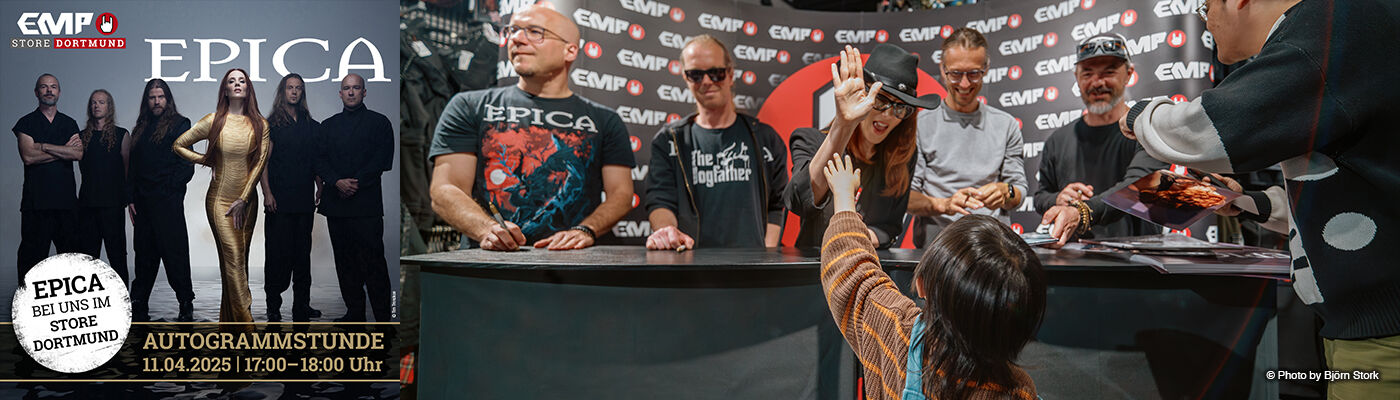 • Am 11.04. durften wir eine der ganz großen Stimmen des Symphonic Metal bei uns begrüßen: EPICA waren zu Gast im EMP Store Dortmund – und mit ihnen eine Welle aus Energie, Emotionen und echter Fanliebe. Unseren Nachbericht zum Event findest du wie immer - nur in deinem EMP #MAG!